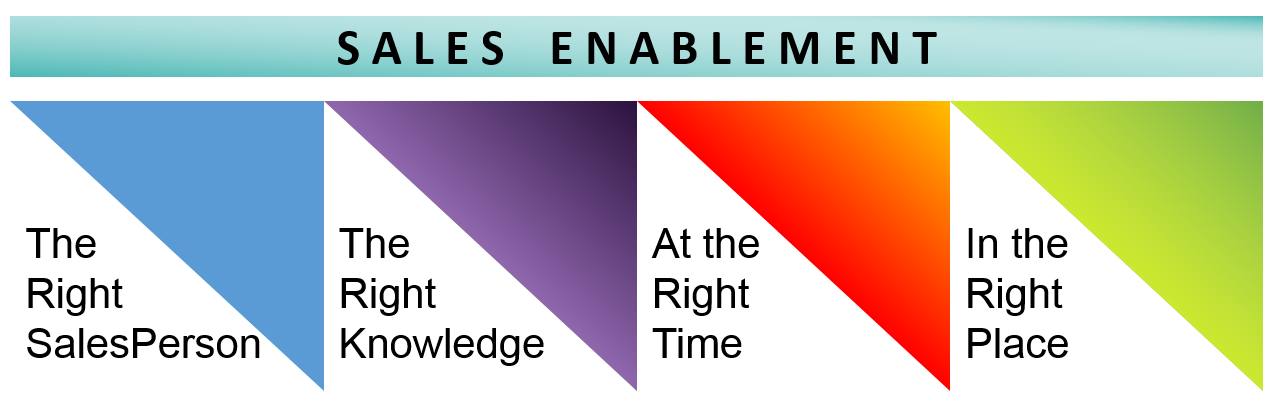Right SalesPerson means a well-trained person. Means a well on boarded person, in case of a new hire. That is why often enablement includes hiring, training and coaching. There are companies, like appical that are specialized in on-boarding new sales teams. Imagine a retail chain that expands its store network and needs to train new people, in its culture, in its products, in its way of approaching customers, how to cross and up-sell.